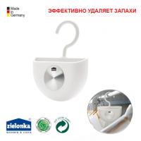 2.Смочите губку водой, поместите в держатель, который с помощью крючка повесьте на кронштейн в шкаф (фото на упаковке).